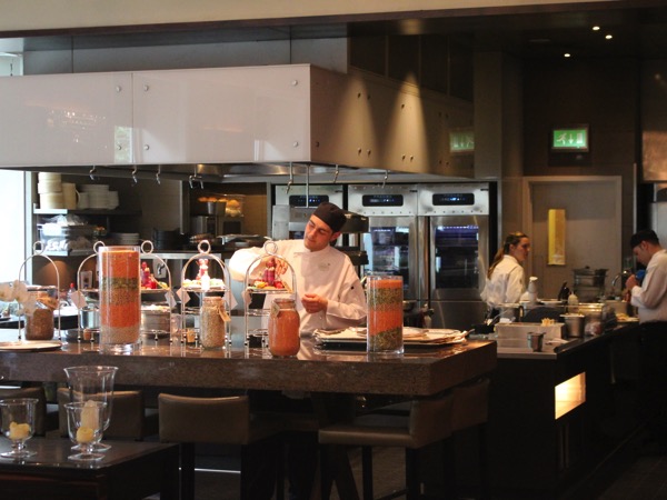 ça tombe bien pour moi aussi et quand on s’installe à cette très belle table c’est d’abord un plaisir des yeux, les mets sont colorés, sur le serviteur du sucré, du salé, les plats défilent sous nos yeux et notre désir de goûter est mis à rude épreuve, le temps de prendre quelques photos…