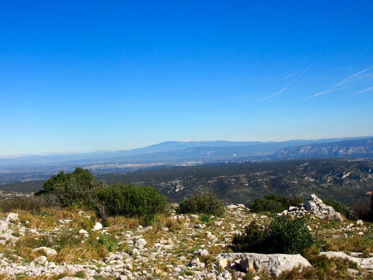 La dernière partie est un peu plus difficile mais quel bonheur d’arriver sur ce point culminant toutes les Alpines, la Provence à mes pieds d’un côté jusqu’à l’étang de Berre et si je me retourne mon géant de Provence, le Mont Ventoux…